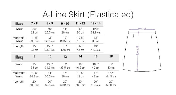This product has limited stock and sizes, grab a great deal whilst stocks last! The A-Line Skirt is made exclusively for SUD. It has a traditional cut and a twin dart front which keeps a professional look for all girls. With a hidden elastic in the waist band, and a side zip and button for easy on/off and comfort. Made from Poly Viscose that's Teflon Coated. It has a Cut Pleat opening on the back. Made in the UK