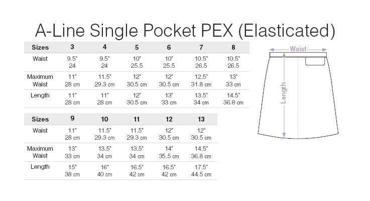 This product has limited stock and sizes, grab a great deal whilst stocks last! This A-Line Skirt is ideal for children with an easy slip on/off! With a little elastic back stretch, it means no need to fiddle around with buttons or zips! It is made from Poly/Viscose and is Teflon Coated. Due to no buttons or zips, this will suit children with a slimmer figure.