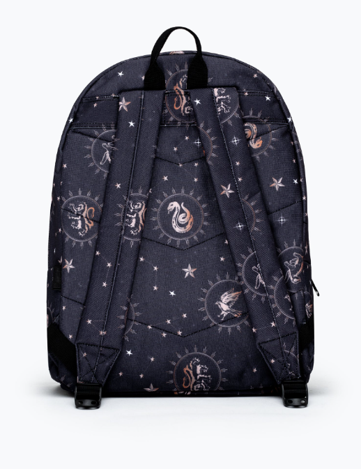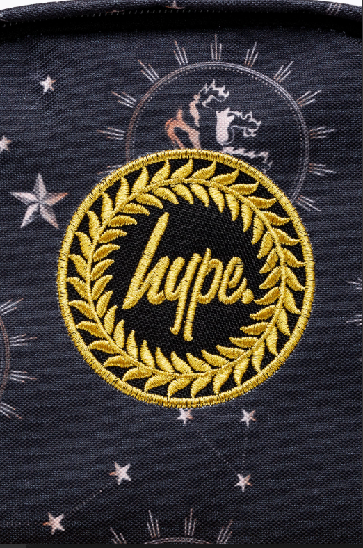 Meet the HYPE. X Harry Potter Gold Backpack. Made from 80% Polyester 20% PU and designed in our standard backpack shape. Highlighting a black constellation house design and a glistening gold front pocket. Finished with a grab handle, front pocket, comfortable over-the-shoulder straps, a Harry Potter keychain, and the iconic HYPE. crest logo embroidered in gold. Don’t forget to grab the matching lunch bag to complete the set! Wipe clean only.